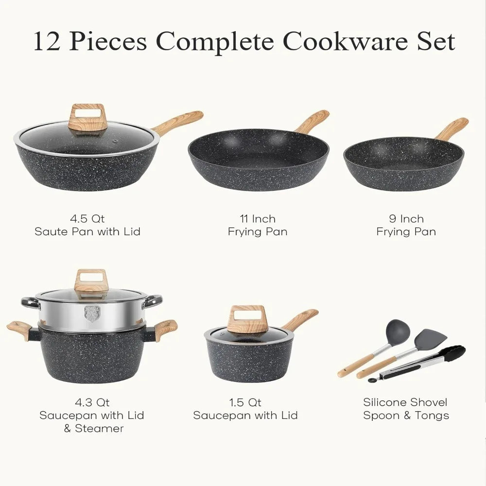 12 Pcs Black Pots And Pans Nonstick Cookware Set,